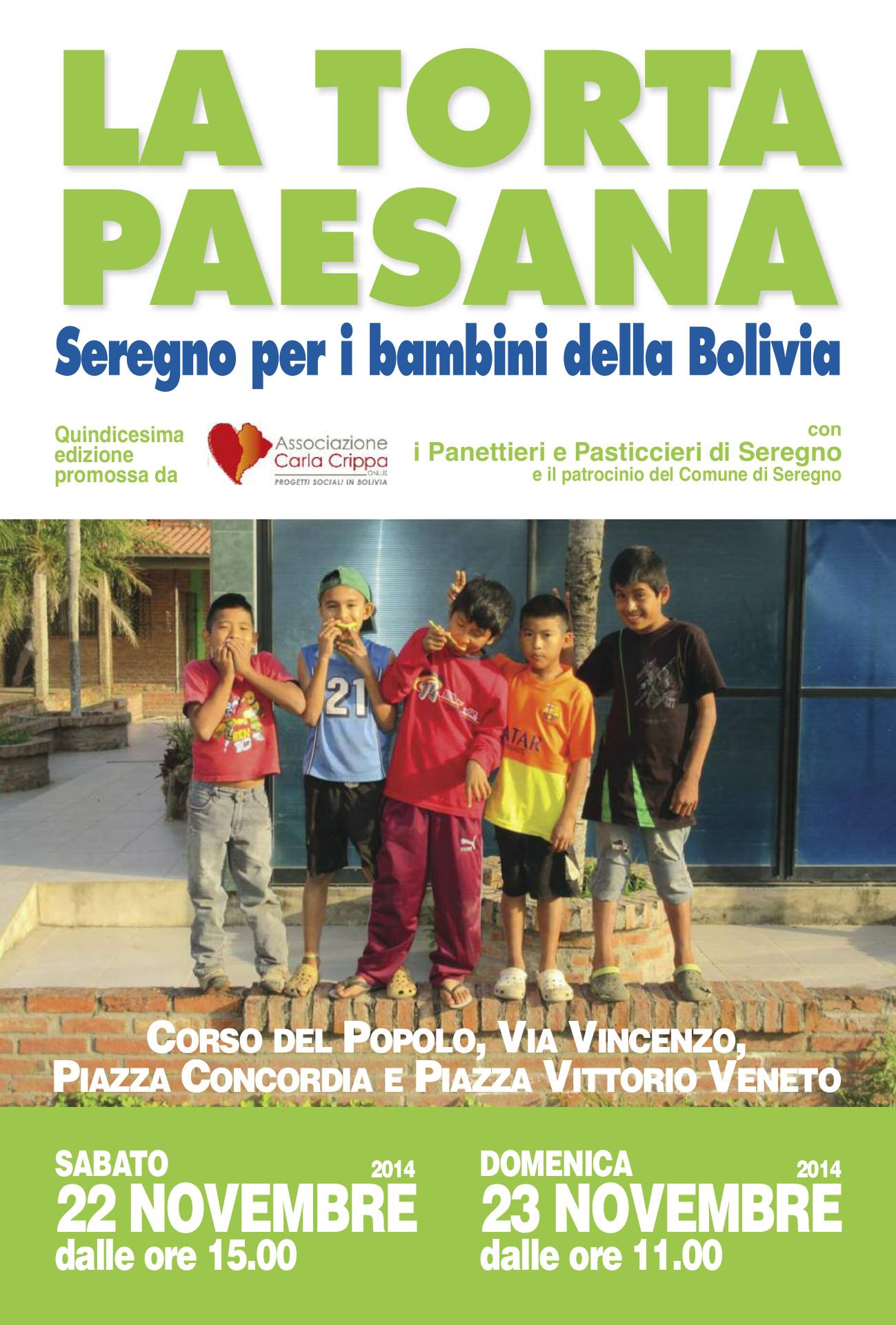 Sabato 22 novembre dalle 15 e domenica 23 novembre dalle 11, per le vie del centro di Seregno, si terrà la quindicesima edizione de “LA TORTA PAESANA”!